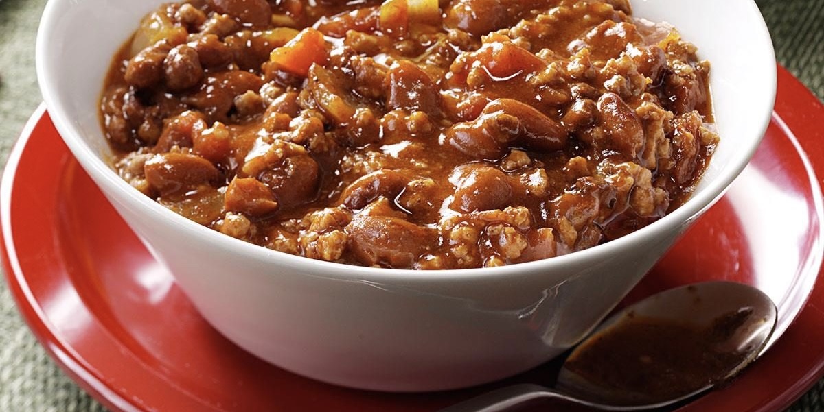 Rich, slow-simmered beef chili with bold tomato depth, warming spices, and a thick, spoon-coating texture.