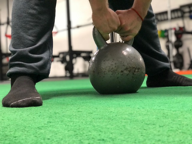This is the most important part of the lift. You will sit back wedging the bar into your shins to bring your femurs parallel to the floor and shins vertical. Your back should be straight and chest open.